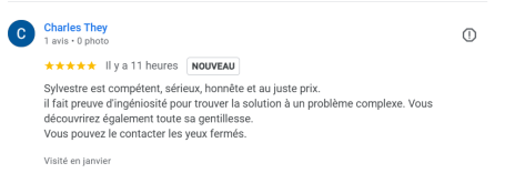 « Artisan compétent, sérieux et honnête, avec un vrai sens du juste prix.